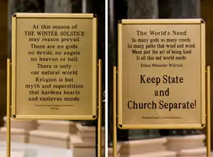 - Letrero en el Capitolio del Estado de Wisconsin, http://www.ffrf.org/news/releases/ffrfs-winter-solstice-sign-returns-to-wisconsin-capitol/