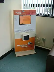 El Freedom Toaster es un kiosko público que permite grabar copias de software libre en un CD o DVD proporcionado por el usuario.