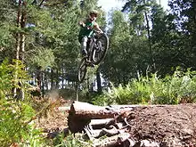 También existe en bicicleta de montaña que consiste en hacer acrobacias en los saltos y obstáculos artificiales como wallrides o northsores (pasarelas de madera) . Normalmente es cuesta abajo y las competiciones de esta modalidad son puntuadas por jueces. Viene a ser una variedad del descenso en bicicleta.
