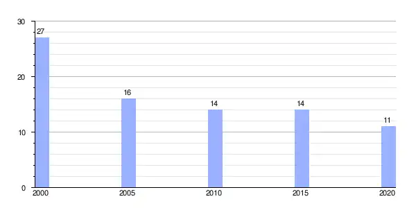 | Gráfica de evolución demográfica de Freixeiro entre 2000 y 2020 |