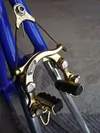 Los frenos caliper (freno de pinzas) son los clásicos frenos de tiro lateral accionados por cable, se monta a un solo punto por encima de la rueda y son casi omnipresentes en las bicicletas de carretera..
