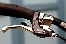 Las palancas de freno están por lo general montado en el manubrio al alcance de la mano del ciclista. Ellos pueden ser separados o integrados en el mecanismo de cambio. La palanca del freno transmite la fuerza aplicada por el piloto a través de un dispositivo mecánico o hidráulico.