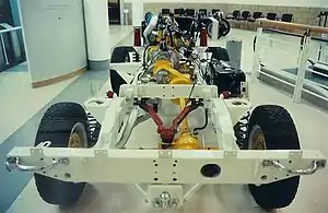 Los frenos de transmisión utilizan un freno de tambor en lugar de un freno de disco, ya que están diseñados como un freno de estacionamiento estático, en lugar de un freno dinámico de alto rendimiento. Los frenos de tambor permiten un ajuste más sencillo con mecanismos de palanca manual accionados por cable. El freno está montado en el eje de salida trasero de la caja de transferencia.