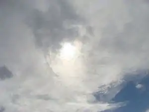 Oclusión de una tormenta formada por el paso de un cumulonimbo, donde pueden verse los rayos solares a través del antiguo "ojo" de la misma, con los anillos ascendentes con giro antihorario formados por aire cálido y húmedo. El inicio de la oclusión en superficie marca el fin de la actividad convectiva de la tormenta.
