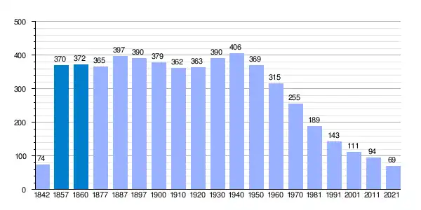 | Gráfica de evolución demográfica de Fresneña[4] entre 1842 y 2021 |