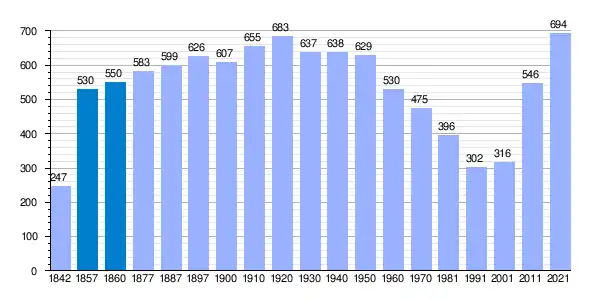 | Gráfica de evolución demográfica de Fresnillo de las Dueñas[6] entre 1842 y 2021 |