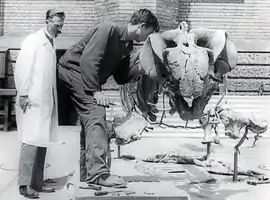 ![]() Friedrich von Huene, y a su derecha un colega, en 1932, preparando un Stahleckeria potens | ||