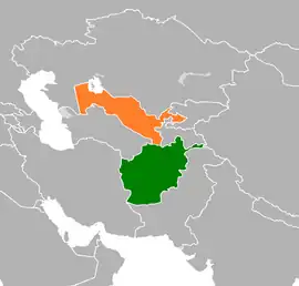 ![]() Localización de Uzbekistán (naranja) y Afganistán (verde).