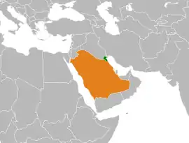 ![]() Localización de Arabia Saudita (naranja) y Kuwait (verde).
