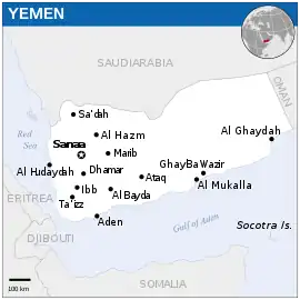 ![]() Localización de Yemen (naranja) y Arabia Saudita (verde).