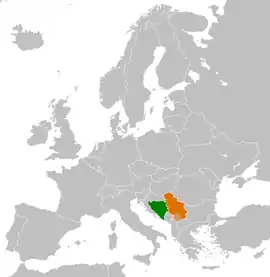 ![]() Localización de Serbia (naranja) y Bosnia-Herzegovina (verde).