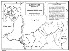 - Geographer, Office of Research in Economics and Science, Bureau of Intelligence and Research (12 de junio de 1964). US Department of State, ed. «International Boundary Study n° 32 Cambodia – Laos Boundary» (en inglés). The Florida State University. Archivado desde el original el 16 de septiembre de 2006. Consultado el 14 de junio de 2010.
