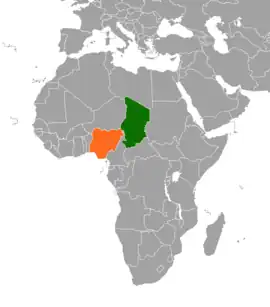 ![]() Localización de Nigeria (naranja) y Chad (verde).