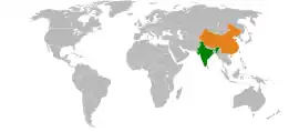 ![]() Localización de India (verde) y China (naranja).