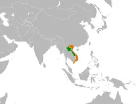 ![]() Localización de Vietnam (naranja) y Laos (verde).
