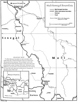Al norte, la frontera encuentra su origen en el trifinio donde convergen las fronteras entre Malí y Mauritania y entre Mauritania y Senegal. Sigue luego una orientación sur-sudeste antes de terminar en otro trifinio que forman las fronteras entre Malí y Guinea y entre Guinea y Senegal.