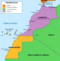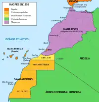 Marruecos y Sahara español en 1958.