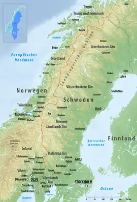 ![]() Localización de Suecia (naranja) y Noruega (verde).