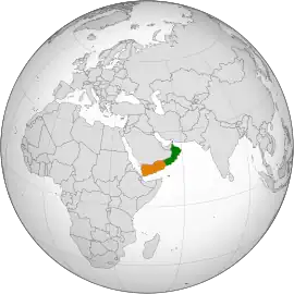 ![]() Localización de Yemen (naranja) y Omán (verde).