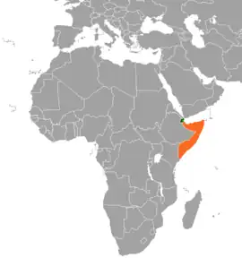 ![]() Localización de Somalia (naranja) y Yibuti (verde).