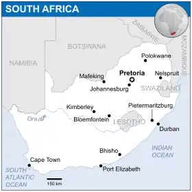Sudáfrica comparte fronteras terrestres con 6 países: Namibia, Botsuana, Zimbabue, Mozambique, Suazilandia y Lesoto, con un total de 5244 km.[1]