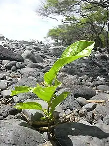 La planta es el alimento de las larvas de la mariposa Acraea acara.