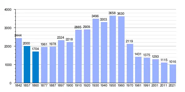 | Gráfica de evolución demográfica de Fuencaliente[3] entre 1842 y 2021 |