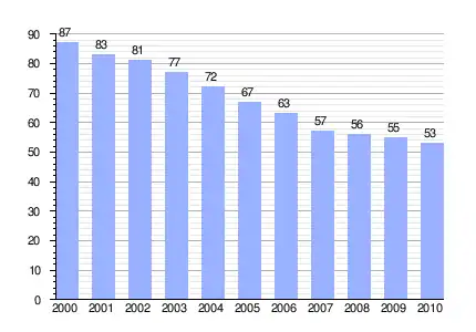 Población de derecho (2000-2010) según los censos de población del INE a 1 de enero de cada año.[3] |