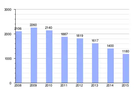 | Gráfica de evolución de la deuda viva del ayuntamiento entre 2008 y 2015 |