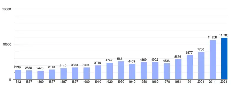 | Gráfica de evolución demográfica de Fuensalida[4] entre 1842 y 2021 |
