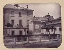Aspecto de la fuente de Leganitos en la desaparecida plazuela de San Marcial, en una foto de Alfonso Begué, en 1864.