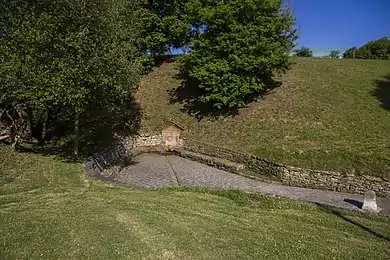 La primera reseña sobre la fuente se remonta a la época de Ordoño II, que fue rey de León desde el año 914 hasta el 924, que la donó a la catedral de Oviedo. La fuente pública, probablemente se reconstruyó en el siglo xviii y está realizada en sillar de arenisca bien tallados en forma paralelepipédica. Tiene planta rectangular y alzado neoclásico.