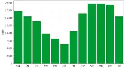 • Variabilidad: Dependiente del sitio.[31] Las brisas marinas son mucho más constantes que las brisas terrestres.[18] La variabilidad estacional puede reducir la producción en un 50%[32]
