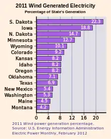 Durante todo el año, más del 20 por ciento de la electricidad de Dakota del Sur se genera a partir de la energía eólica.