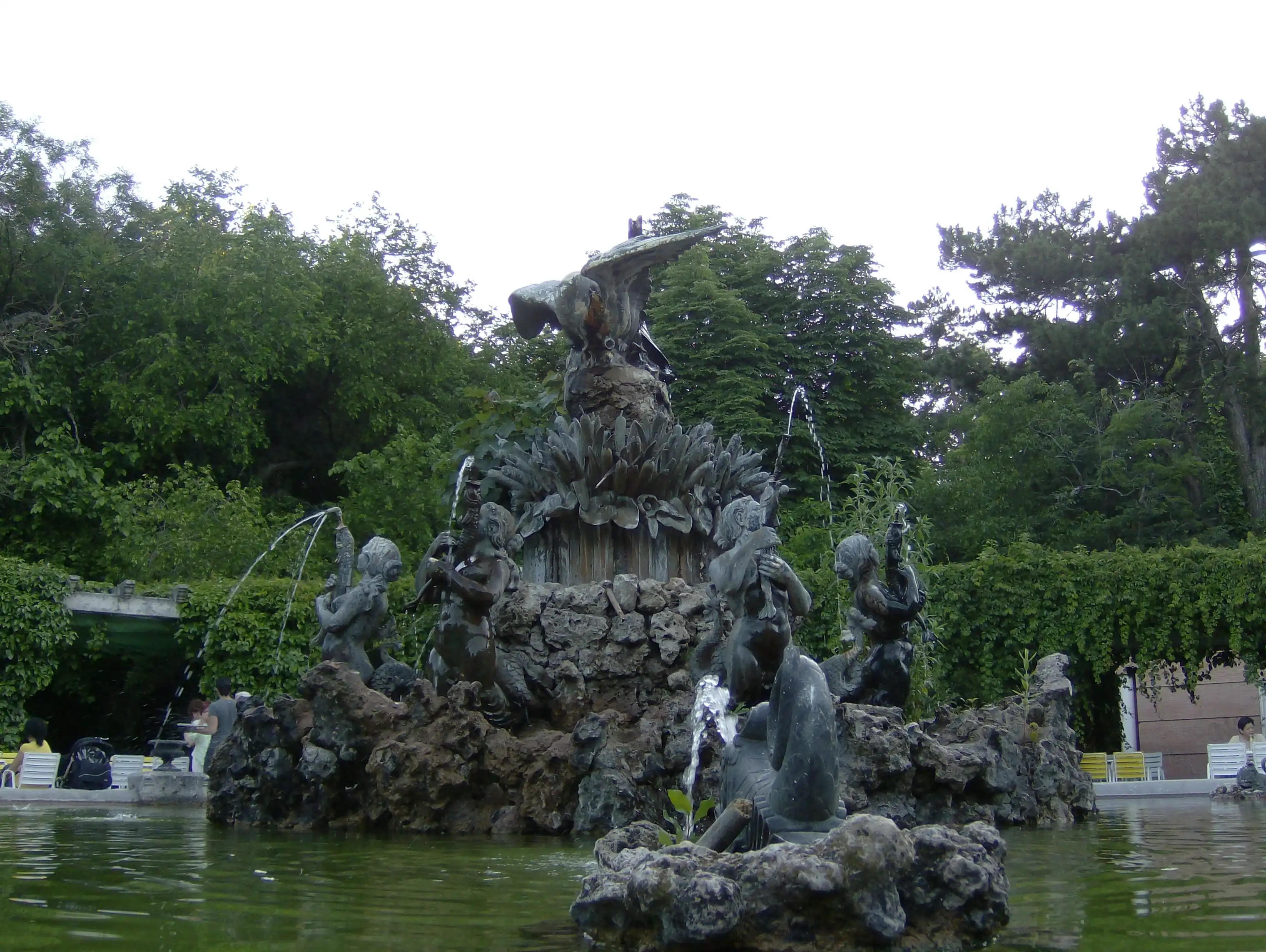 Fuente del Cisne. Lindo capricho formado por Sirenas y Delfines y un hermoso Cisne en el centro. Ocupa una de las plazoletas de los jardines del Campo Grande. Originariamente se la colocó en la glorieta de la plazuela de Poniente.(González García-Valladolid, 1922, p. 100)