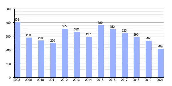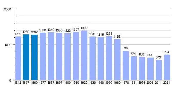 | Gráfica de evolución demográfica de Fuenteheridos[2] entre 1842 y 2021 |