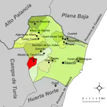 - Barranco o Valle de Segart[1] o Palmeral: Monzó Nogués, Andrés, Notas arqueológicas-prehistóricas del agro saguntino, Anales de Cultura Valenciana, 1943.[4]. Es el constituido por la cuenca del barranco de su mismo nombre, se origina en una zona muy intrincada de la sierra por la parte de La Mola, toma la dirección de oeste a este y después de dejar a su izquierda las casas del pueblo del que toma el nombre se dirige al Palancia.[1]