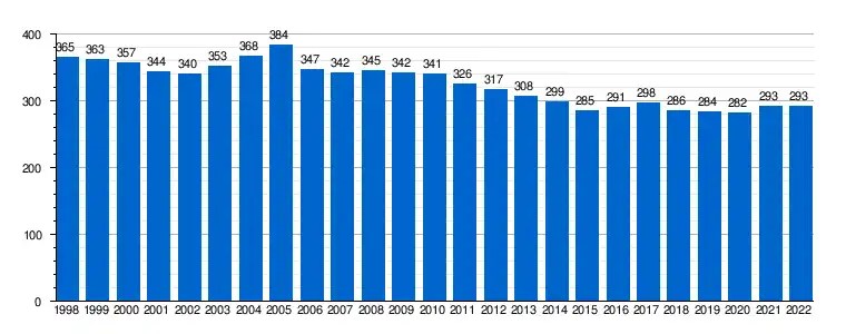 | Gráfica de evolución demográfica de Fuentespalda[8] entre 1998 y 2022 |