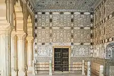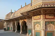 En el lado este está el Divan-i-khas o sala del Consejo Real, que lleva el nombre de Jai Mandir. Es una sala muy lujosa decorada con mármol blanco y con mosaicos, tanto el techo como las paredes. Hay otra sala totalmente recubierta de espejos y vidrieras de colores llamada Shish Mahal, propiedad de la maharaní.
