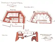 Es un fuerte cuadrado, que sobresale del lienzo del Cuarto Recinto Fortificado hacía Ataque Seco construido en piedra de la zona para los muros y ladrillo macizo para los arcos y las bóvedas, que estaba compuesto por una batería a la que se accedía desde una rampa, hasta la construcción de unas viviendas sobre él.[1][5][6][7][8]