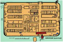 Letrinas. Estaban higiénicamente situadas en la esquina más baja del fuerte, y se abastecían de un depósito de agua situado en la parte posterior.[15]