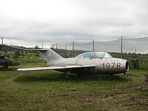 Un antiguo caza Mikoyan-Gurevich MiG-15UTI de la Fuerza Aérea del Ejército Popular Húngaro conservado en Zamárdi, Hungría.