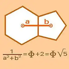 En el icosaedro truncado y los cuerpos geométricos semejantes a él —los hexapentas— la clave matemática está en la relación geométrica entre los hexágonos y los pentágonos que los configuran. La demostración de la armonía en los hexapentas en general, dada la consonancia entre sus hexágonos y pentágonos componentes (considerando que ambas figuras en cada caso tienen la misma longitud de sus lados o aristas del poliedro), está dada en la relación de sus apotemas mediante el Número Áureo (ф = 1,618…).