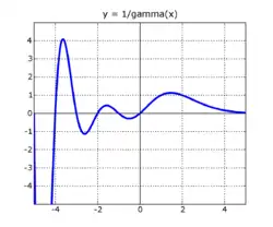donde denota la función gamma. Puesto que la función gamma es meromorfa y distinta de cero en cualquier lugar del plano complejo, su inversa es una función entera. La inversa es usada a veces como punto de inicio para cálculos numéricos de la función gamma, y unas pocas librerías proporcionan separadamente ésta de la función gamma normal.