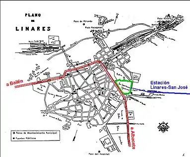 En 1908, se prolongó el trazado de la línea férrea Linares-Almería desde la estación de Linares-Baeza a la nueva estación de Linares-San José, construida junto al núcleo urbano de Linares.[7] Para aprovechar esa conexión con toda la red de ferrocarriles española, se construyó una hijuela desde la estación de San José hasta un apartadero en el interior de la fábrica de La Constancia, donde lo que permitía distribuir su producción por ferrocarril. El apartadero se mantuvo hasta 1975, en que suprimió el transporte —desde 1961 solo de mercancías— entre la estación de Linares-Baeza y la de Linares-San José.
