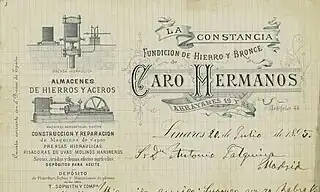 La Fundición La Constancia, fue fundada en Linares en 1877 por los hermanos Caro.[1] A la fundición se añadía la fabricación de construcciones destinadas a la minería, la agricultura y el ferrocarril. Integrada en 1901 en la Sociedad Española de Construcciones Metálicas, se mantuvo en producción hasta 1989.