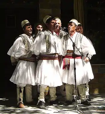 La fustanela es una falda tradicional usada como prenda de vestir por los hombres en varias zonas de la Península Balcánica, especialmente en Albania, Macedonia del Norte y Grecia, de forma similar al kilt. En los tiempos modernos, la fustanela ha constituido parte de la vestimenta folclórica balcánica. En Grecia, una versión corta de la fustanela forma parte de la indumentaria de gala del ejército y de la guardia presidencial (los Evzones), mientras que en Albania fue utilizada por la Guardia Real en la época de entreguerras.