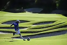 1.- Se utiliza un balón de fútbol en lugar de las bolas de golf, y en lugar de los palos de golf se usan los pies. Los jugadores deben introducir el balón en los hoyos, que son de un tamaño acorde.