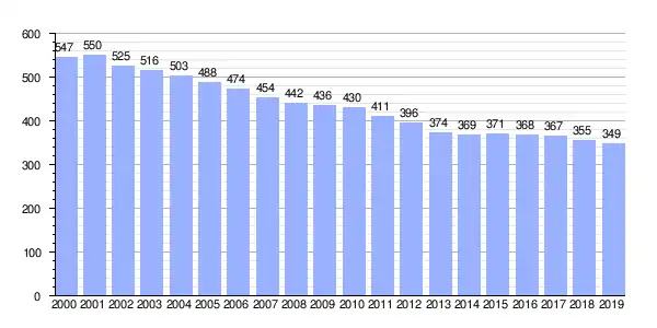 | Gráfica de evolución demográfica de Gándara (parroquia) entre 2000 y 2019 |