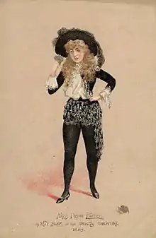 El burlesque victoriano se caracteriza por presentar escenarios paródicos que aluden al estilo convencional de una obra clásica artística preexistente, es decir, se caracteriza por hacer una parodia de una obra dramática, ballet u ópera para reflejar un tipo de burla hacia las nociones tradicionales del estilo convencional de dichos trabajos artísticos.[16] El estilo tradicional del burlesque suele relacionarse con diversos aspectos de la comedia musical, concretamente, la parodia musical; como un auxiliar cómico se realiza el pastiche para ensamblar o citar fragmentos musicales de distintas obras preexistentes, así, crear una forma de parodia hacia el estilo original de las piezas musicales.[17] En la segunda mitad del siglo XIX, debido a la influencia del music hall, el cabaret y el revue, el burlesque victoriano asimila distintos patrones artísticos relacionados con la expresión musical, aplicando diversos elementos de la operetta, la ópera cómica y la opéra-comique.[18]